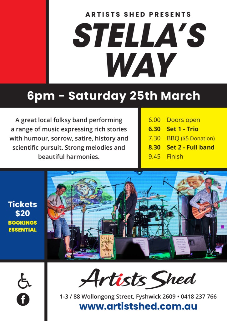 This should be fun! We will be performing 22 (or so) of our songs. The first half as a trio and the second half as a full band featuring Rob Priddle (bass), Dustin Copeland (drums) and Gary Ewart (keys). The wine bar will be open and there will be a bbq at the interval. We would love to see you there!